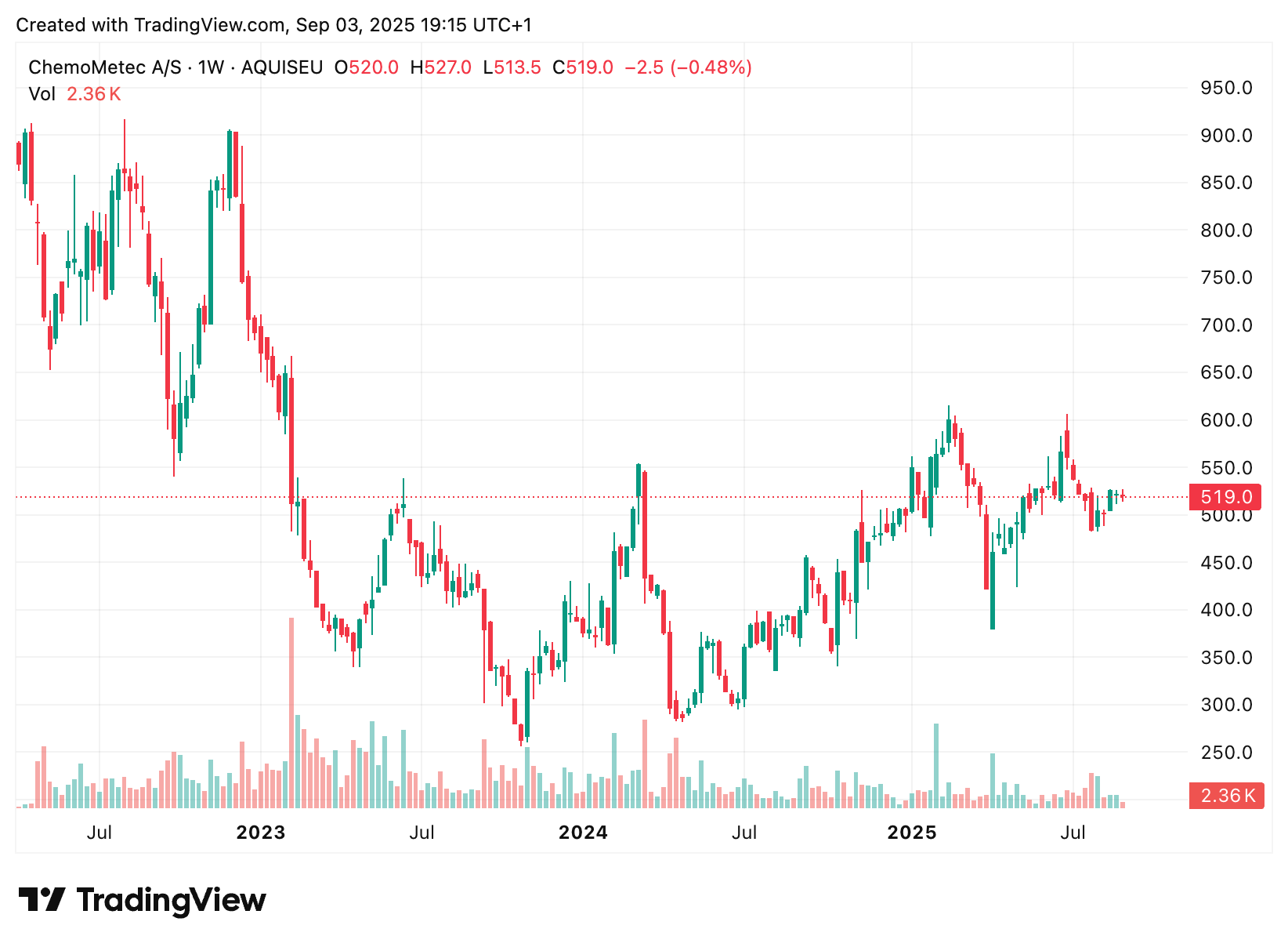 ChemoMetec's stock chart tells this story visually. A phenomenal run-up during the biotech euphoria of 2020-2021 was followed by a sharp and painful correction throughout 2022 and 2023 as the funding winter took hold. The recent string of strong results in the 2024/25 fiscal year has sparked a significant recovery, but the stock remains well below its all-time highs.