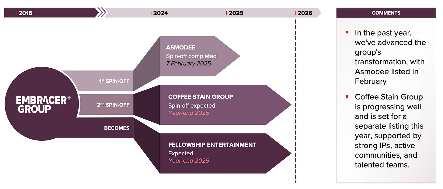The complexity of the split: Dividing a company of Embracer's size into separate entities is a challenging undertaking. While the strategic logic behind it is sound, the operational, financial, and legal complexities are significant. Important questions remain: How will the existing debt be fairly split? Who will lead the new entities? How will internal dependencies be managed? The board's new "Transformation fee" (i.e. extra compensation for BoD members) acknowledges this very complexity. A smooth, well-managed separation is critical to truly unlocking the value that analysts are now starting to forecast. Any missteps could spook a still-nervous market.