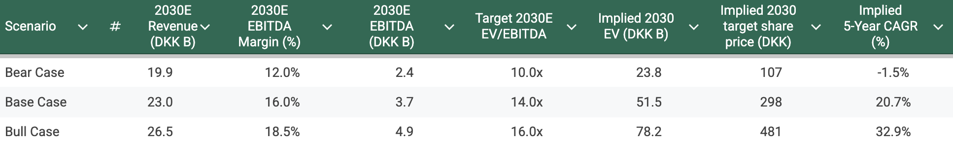 🎯 Target Price (Base Case): DKK 298 by 2030.